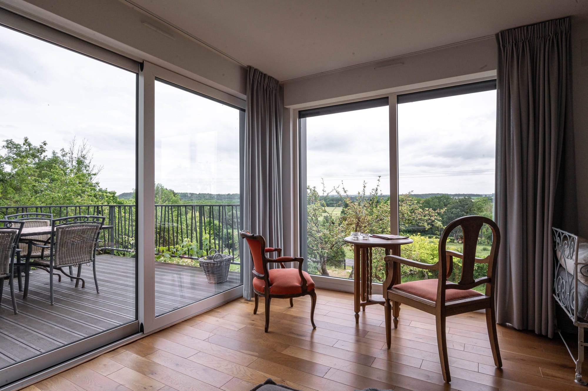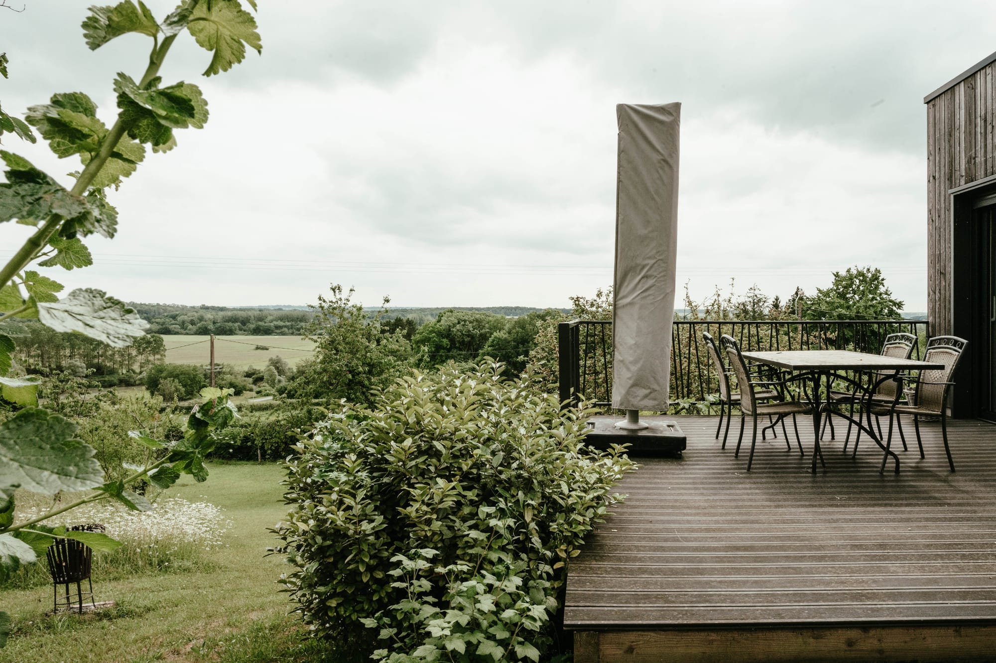Ruim terras met parasol.